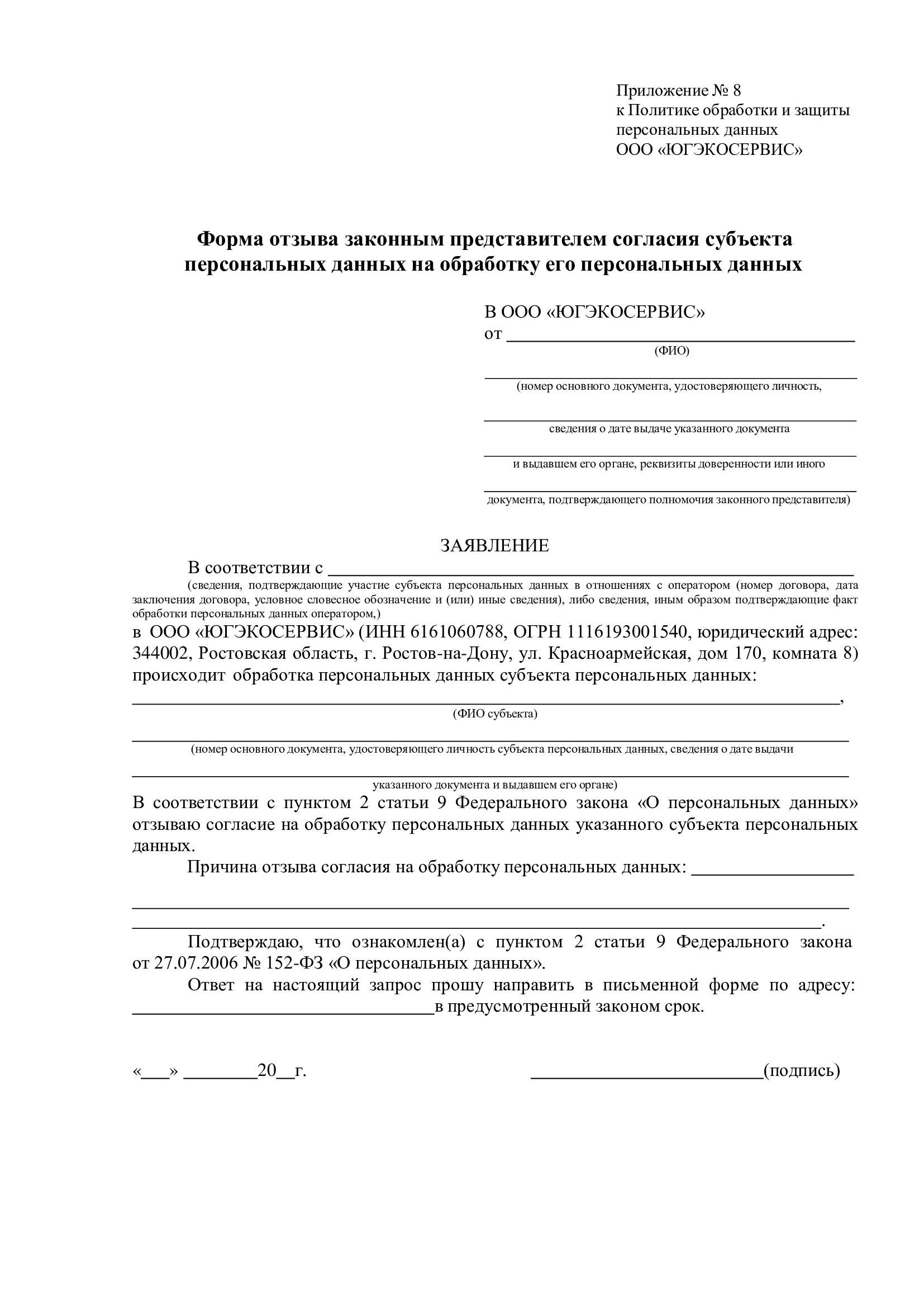 1.5.9. Прекращать обработку персональных данных в случае отзыва субъектом согласия на их обработку. Общество сохраняет право на продолжение обработки персональных данных без согласия субъекта при наличии оснований, предусмотренных пп. 2–11 ч. 1 ст. 6, ч. 2 ст. 10 и ч. 2 ст. 11 Федерального закона от 27.07.2006 № 152-ФЗ «О персональных данных».